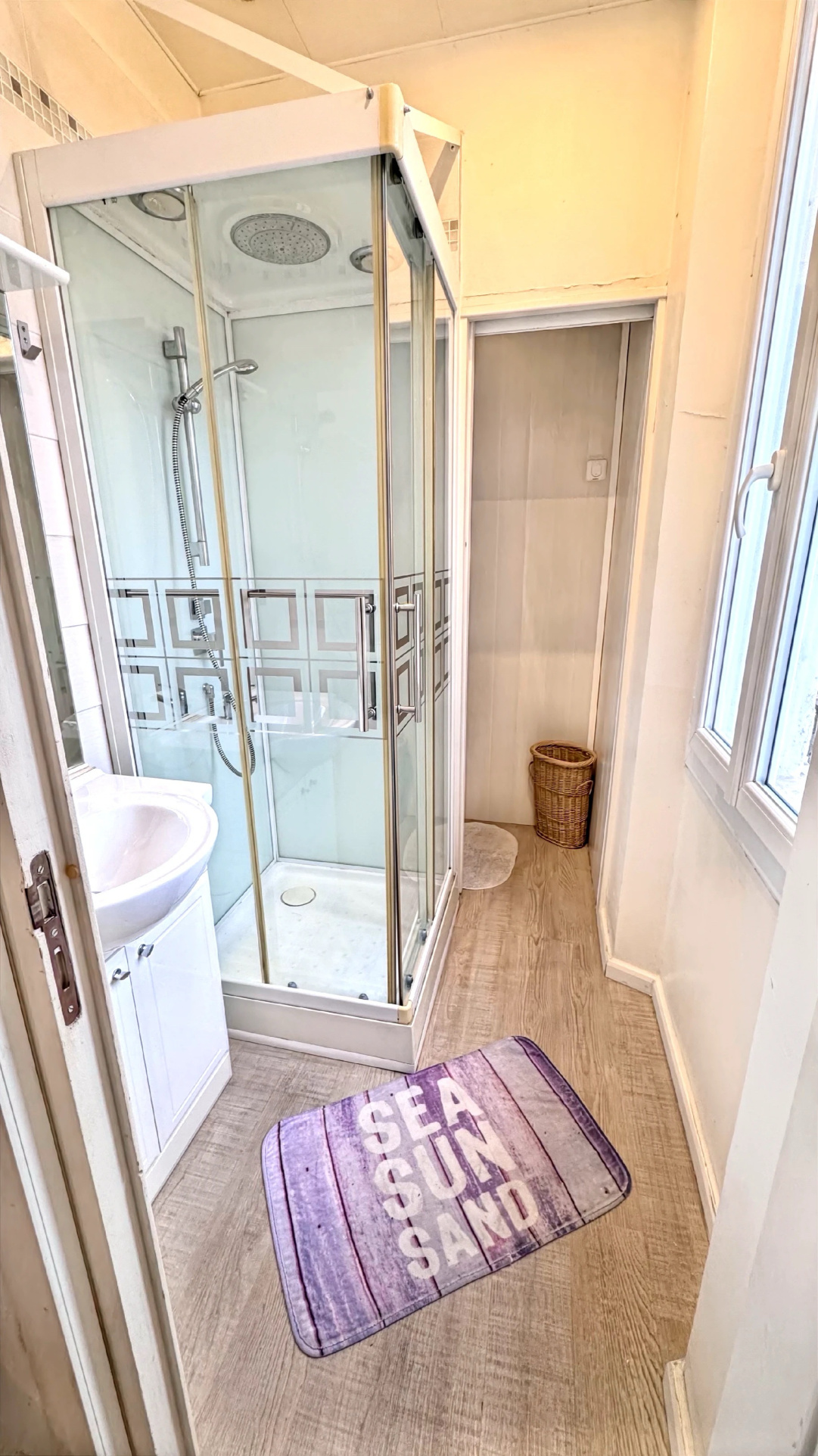 Parfaitement optimisé, l’appartement offre une entrée, une cuisine semi-ouverte entièrement équipée, un séjour lumineux, une salle d’eau moderne ainsi que des WC séparés.