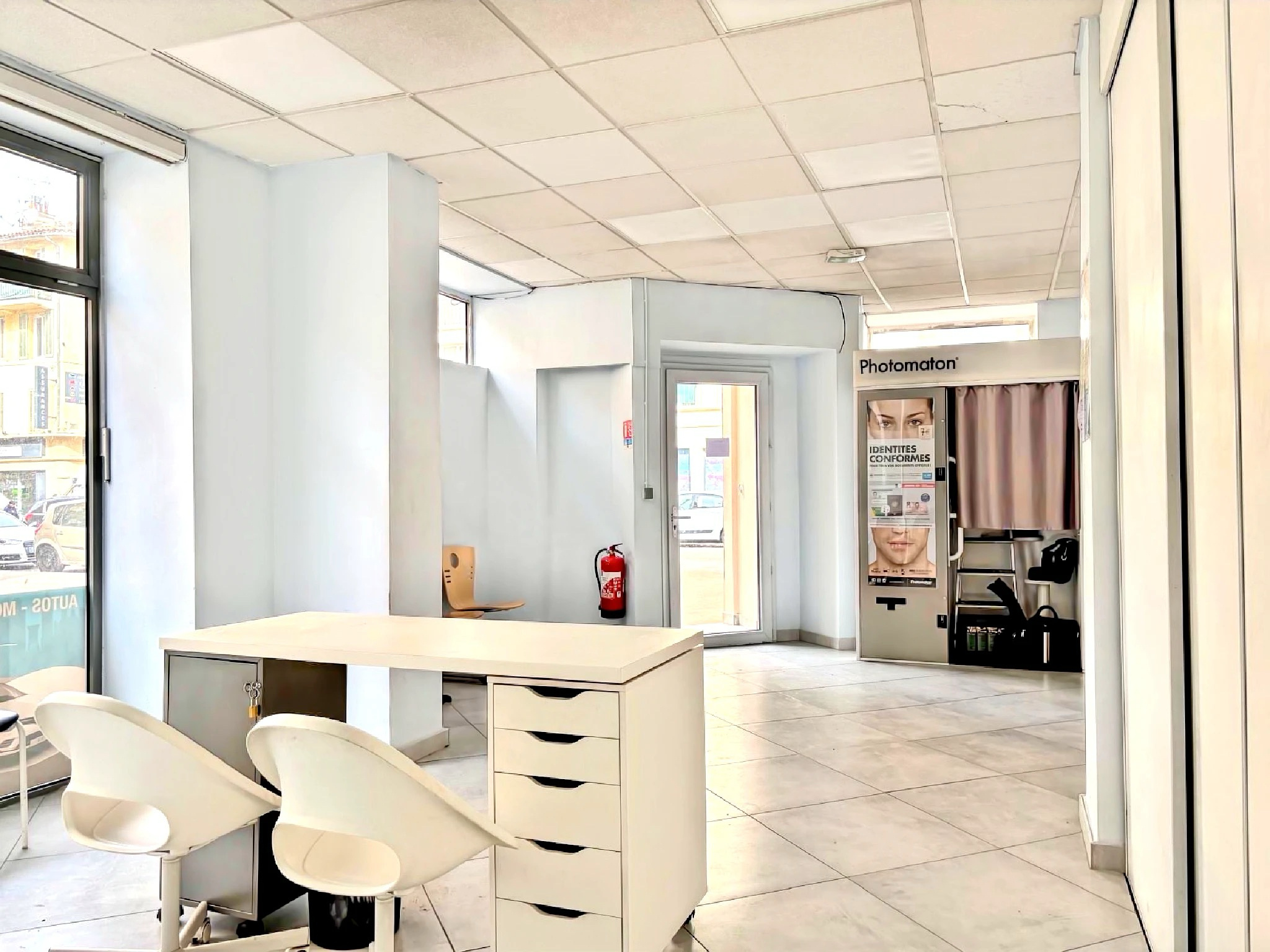 -La vitrine est en bon état et possède un rideau métallique motorisé