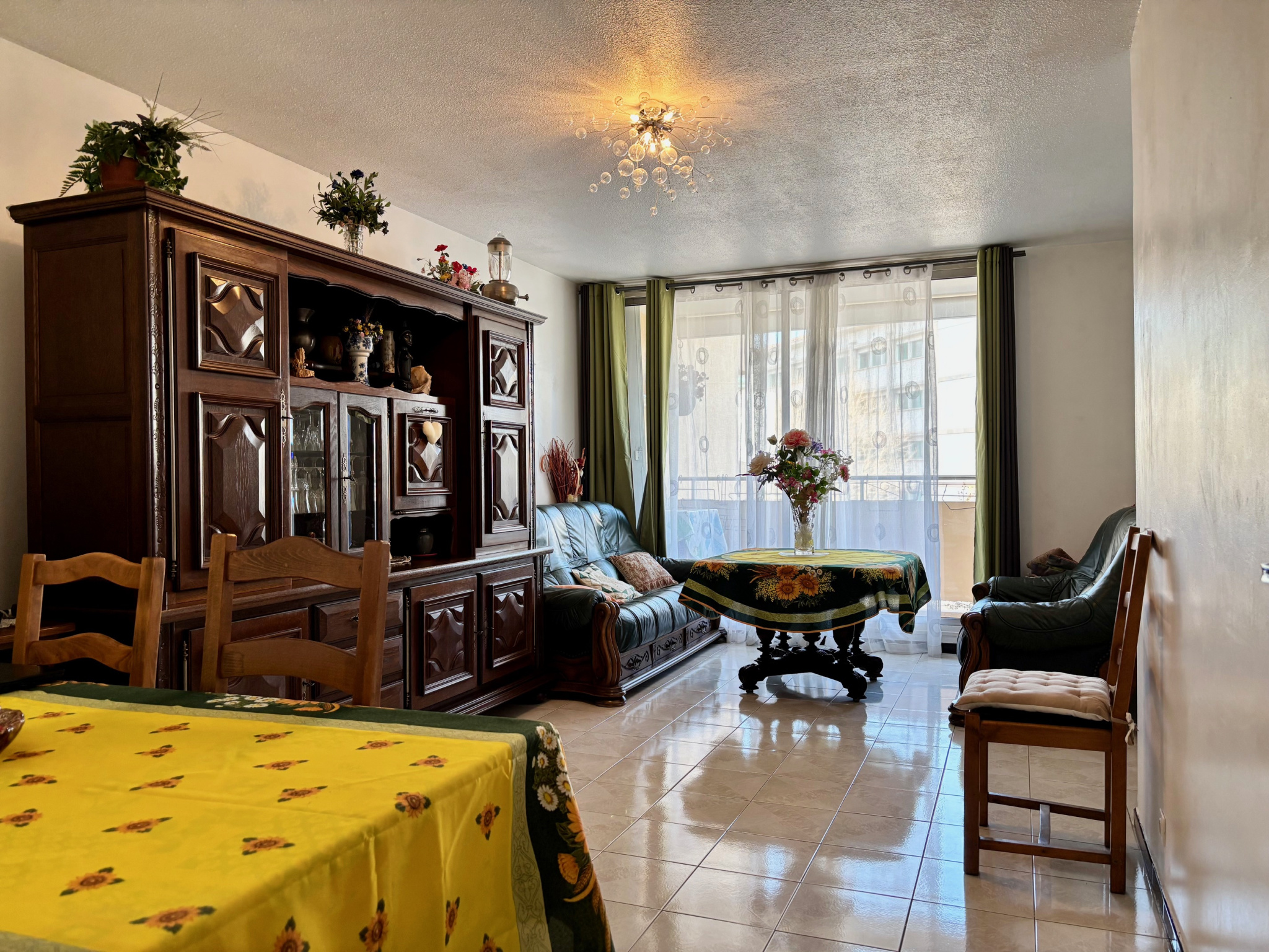 Le séjour, d’environ 20 m2, lumineux et agréable, s’ouvre sur un balcon orienté sud-est, permettant de profiter d’une belle luminosité tout au long de la journée.